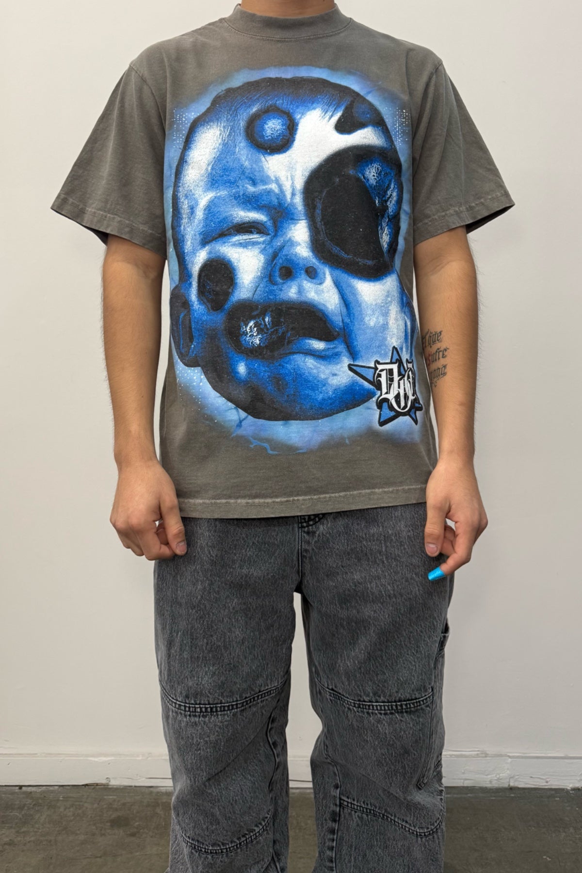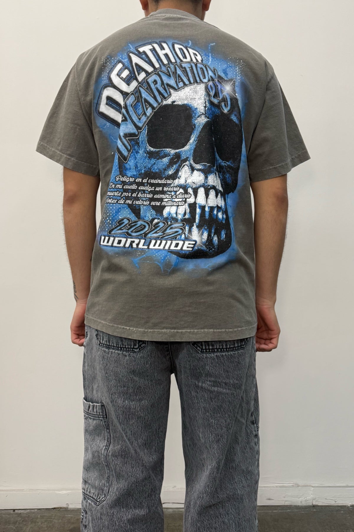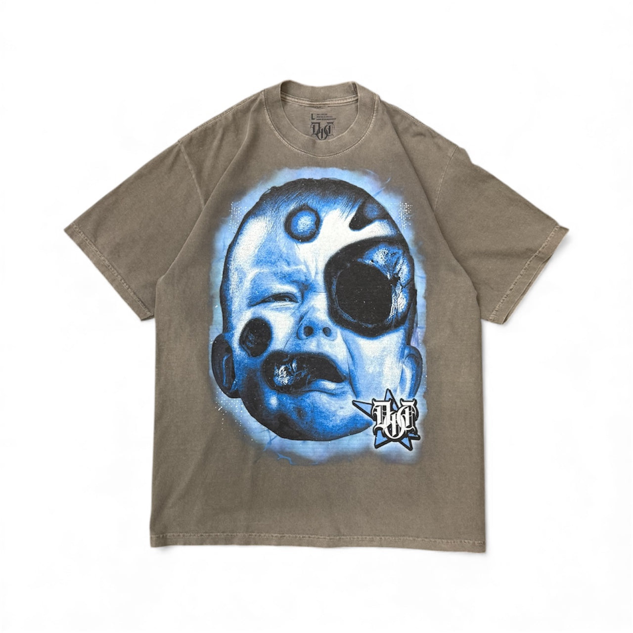 The raw truth of street life. The front features a crying baby - representing innocence entering a harsh world, while the back displays a skull marked with 'DOI' (Death or Incarceration) - the reality many face